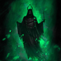 The image depicts a fantasy-themed illustration. It features a character that appears to be an undead or