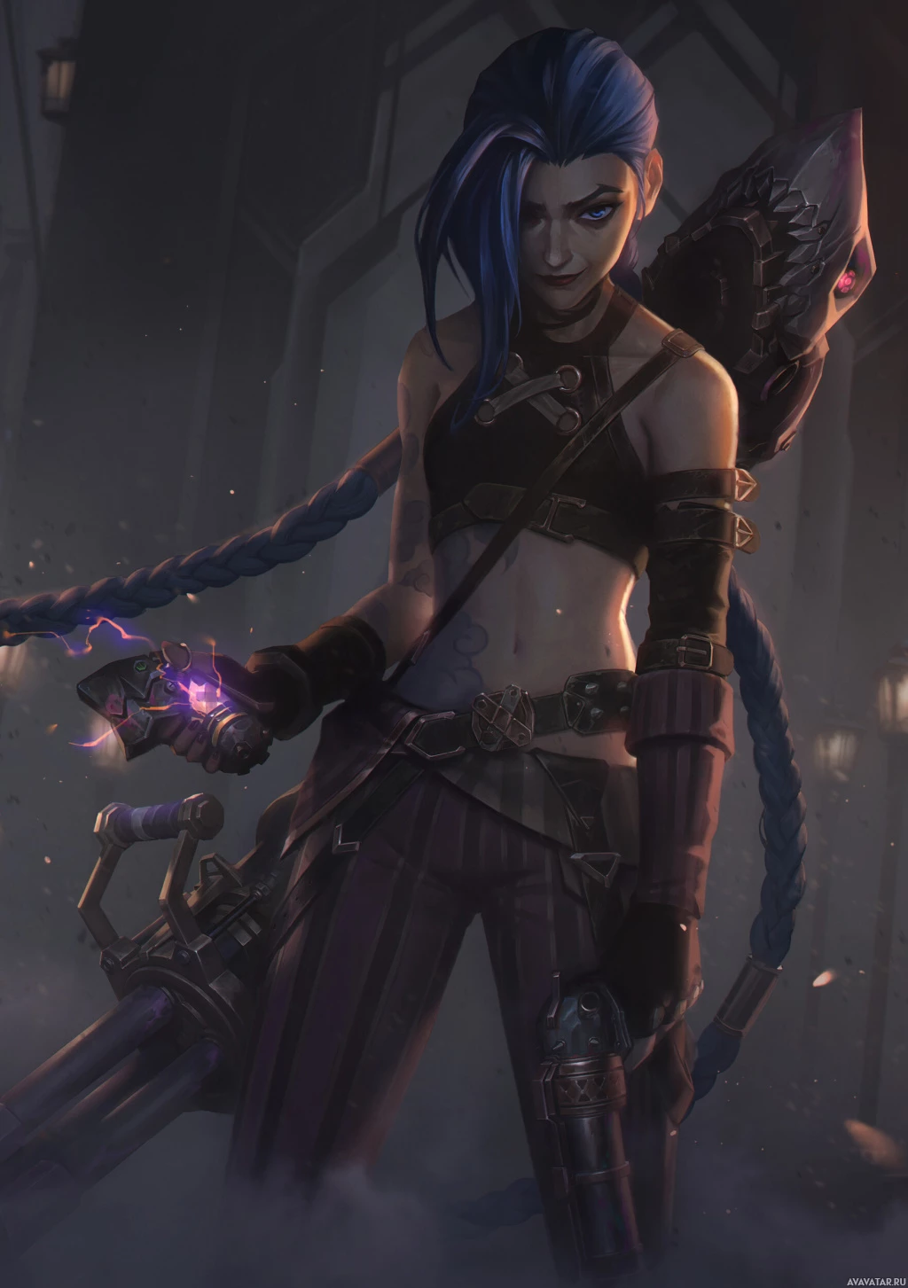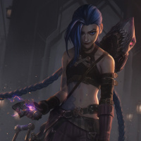 the video game "League of Legends." This character is known as Jinx. She is depicted with