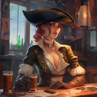 a female character dressed in pirate-inspired clothing. She has