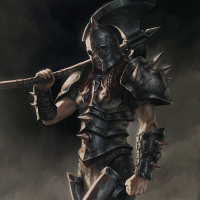 This image depicts a warrior character, likely from fantasy or historical fiction genres. The character is wearing armor and holding an axe, which suggests that they are a skilled combatant. The pose of the figure gives a sense of readiness for battle.