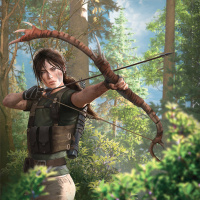a tank top, cargo pants, and a bow with arrows. This scene captures Lara in