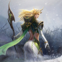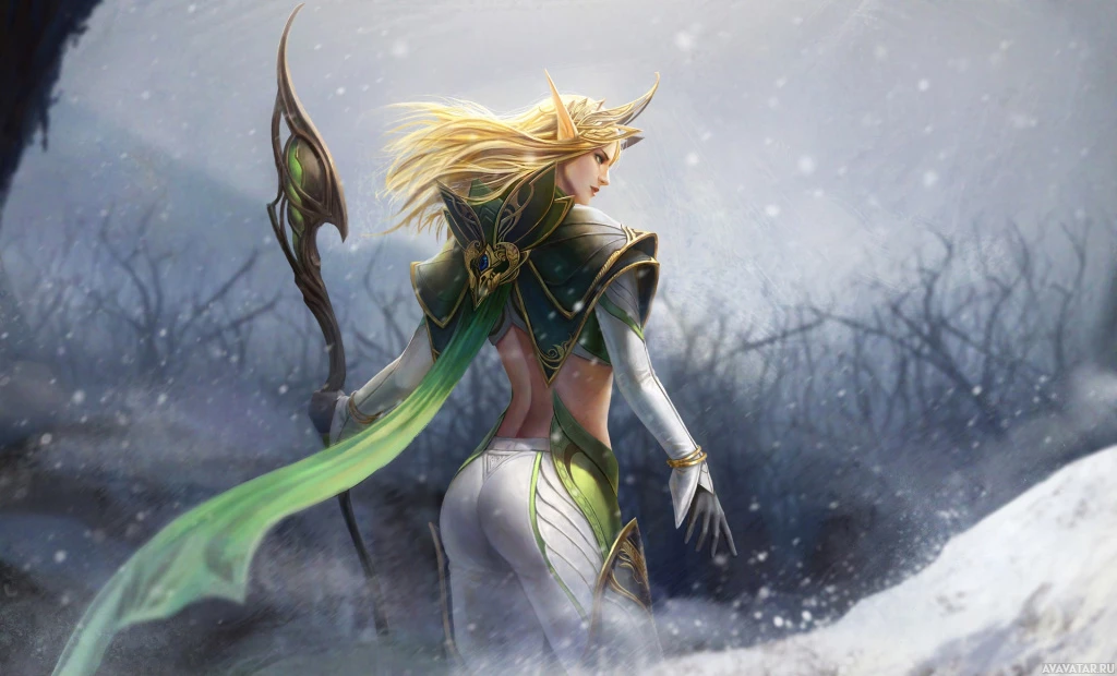 covered ground, suggesting a winter setting or environment typical of high-altitude areas within the game's world. The art style is detailed and vibrant, capturing the essence of the character's design in WoW.