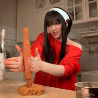 related activity within their cosplay. The setting suggests that the person may be participating in a themed event or creating content related to anime or video