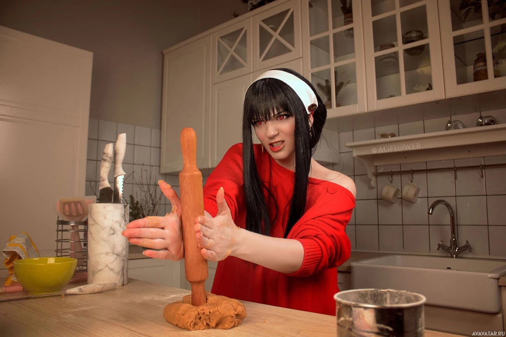 a kitchen counter, with various cooking utensils and ingredients around them. They seem to be making some sort of dough, possibly for a food-
