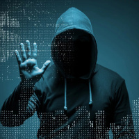 a digital interface displaying various icons and text, which suggests a modern, technological setting. The overall impression is one of anonymity and possibly cybersecurity or hacking themes.