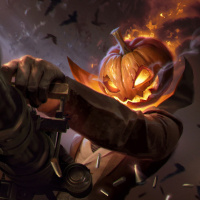 glowing eyes and a flaming head design, which is often associated with the Halloween holiday. The background suggests an intense or chaotic environment typical of action-packed