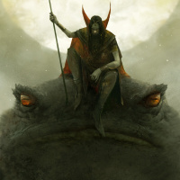 red eyes, suggesting a mythical or fantastical element. The overall style of the artwork is detailed and somewhat dark in tone, indicative of a high-