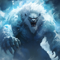 a supernatural being. The bear is surrounded by dramatic lightning and