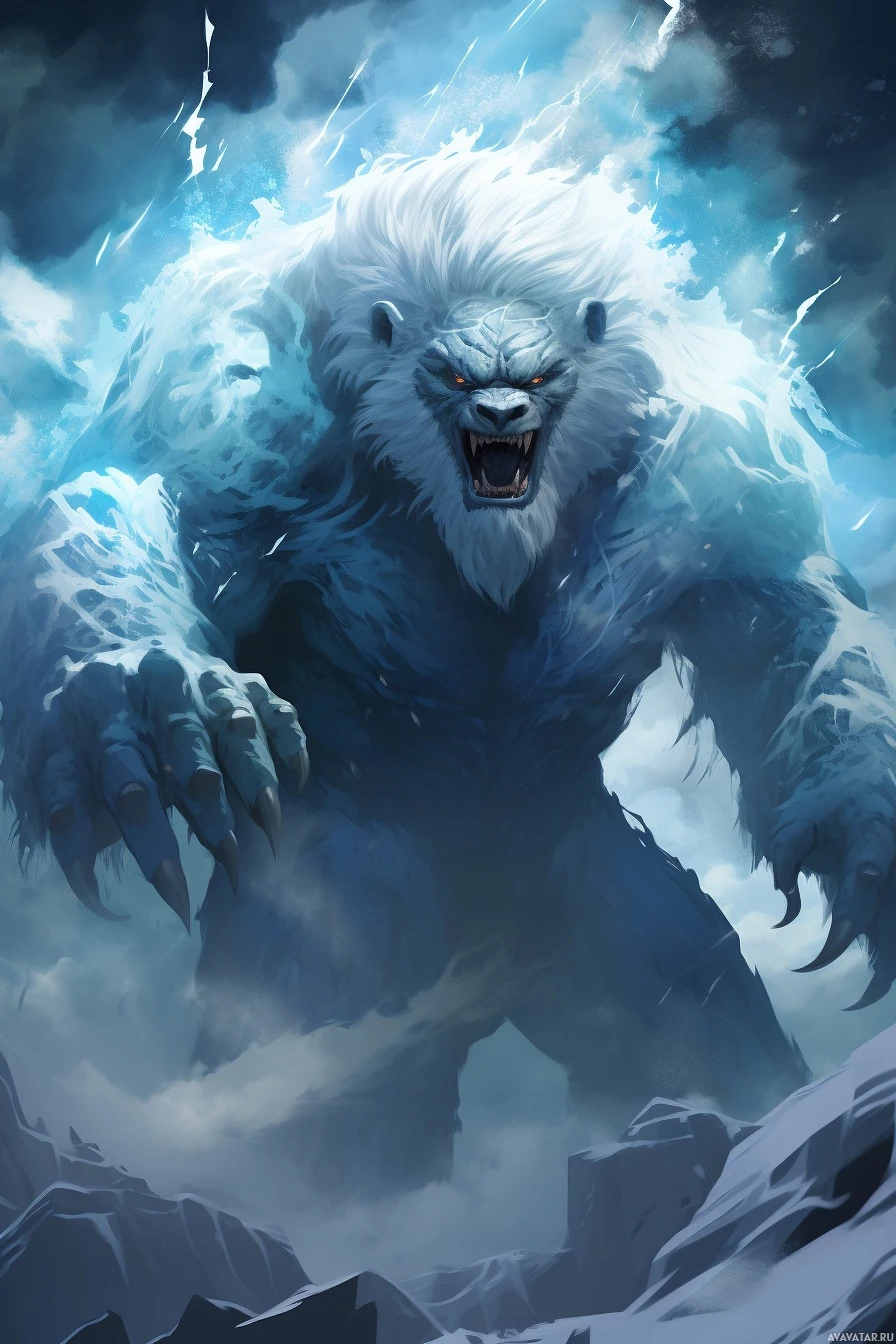a fantasy scene with a monstrous figure resembling a bear. The creature has