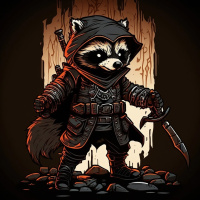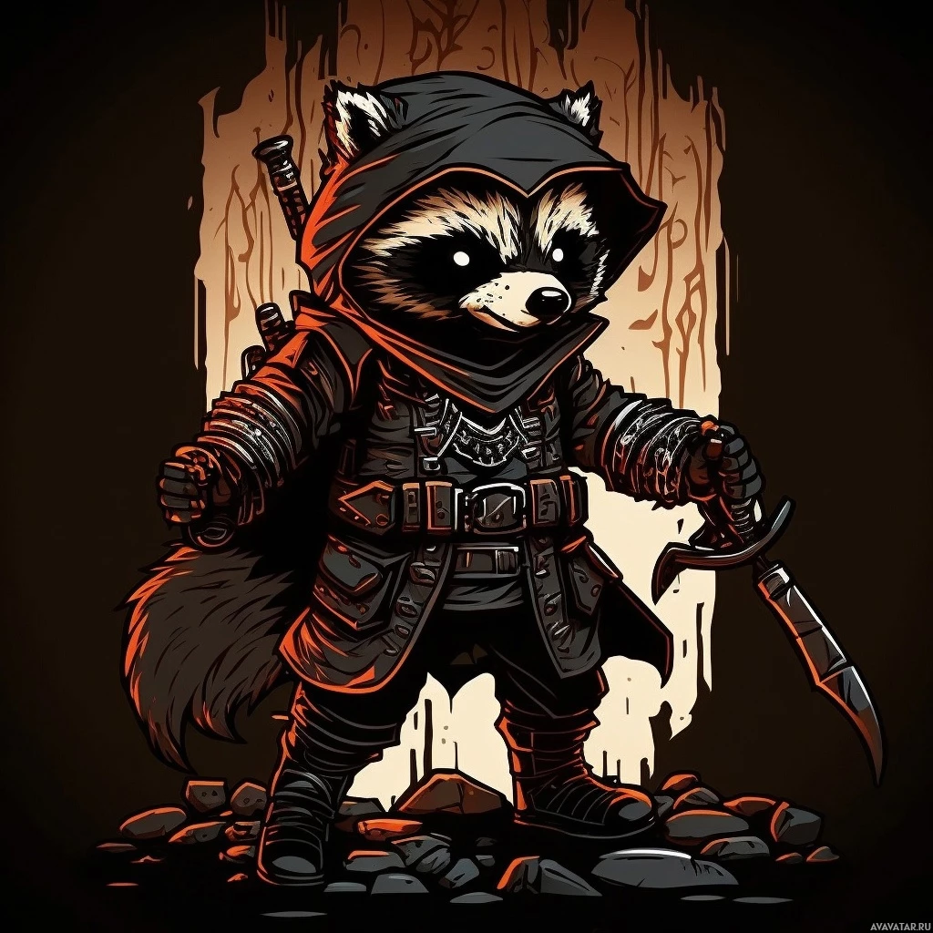 The image features an anthropomorphic raccoon wearing a black