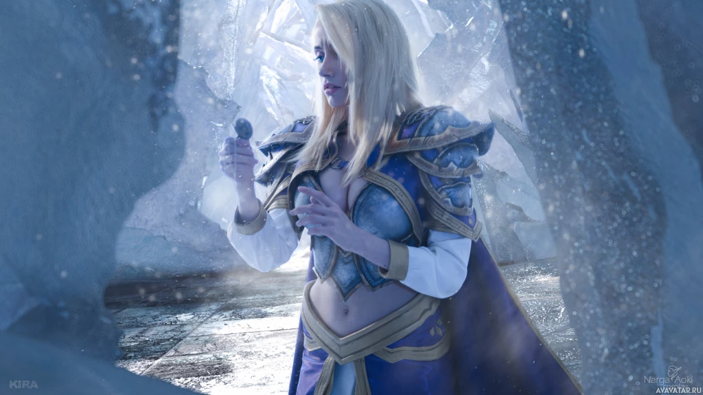 the Warcraft universe, specifically Jaina Proudmoore. She is depicted in her