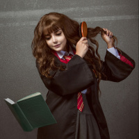 The picture shows a person dressed as Hermione Granger from