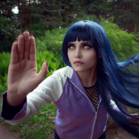 blue hair and a fantasy-style outfit. They appear to be in a cosplay setting, where people dress up as characters from anime, manga,