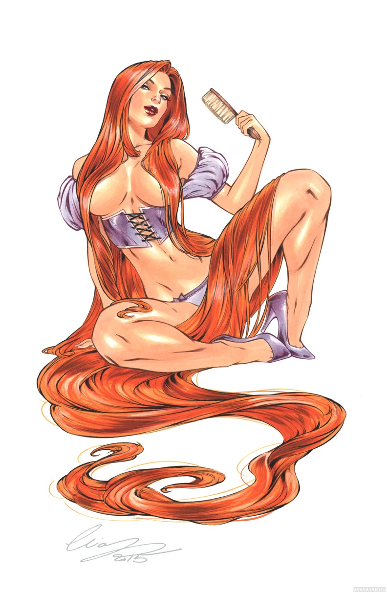 The image shows a stylized illustration of Rapunzel, a character from the classic