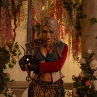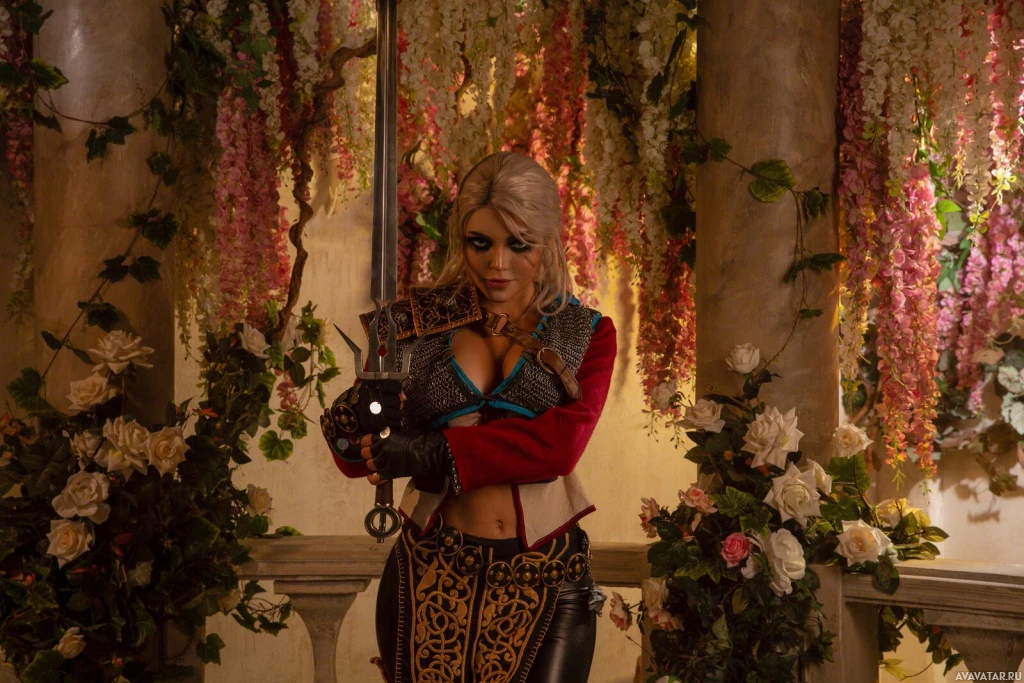In the image, we see a person dressed in costume as Ciri, a character from