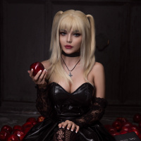 animated film. The individual is wearing a black and red corset dress, which is inspired by