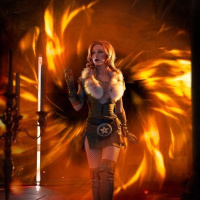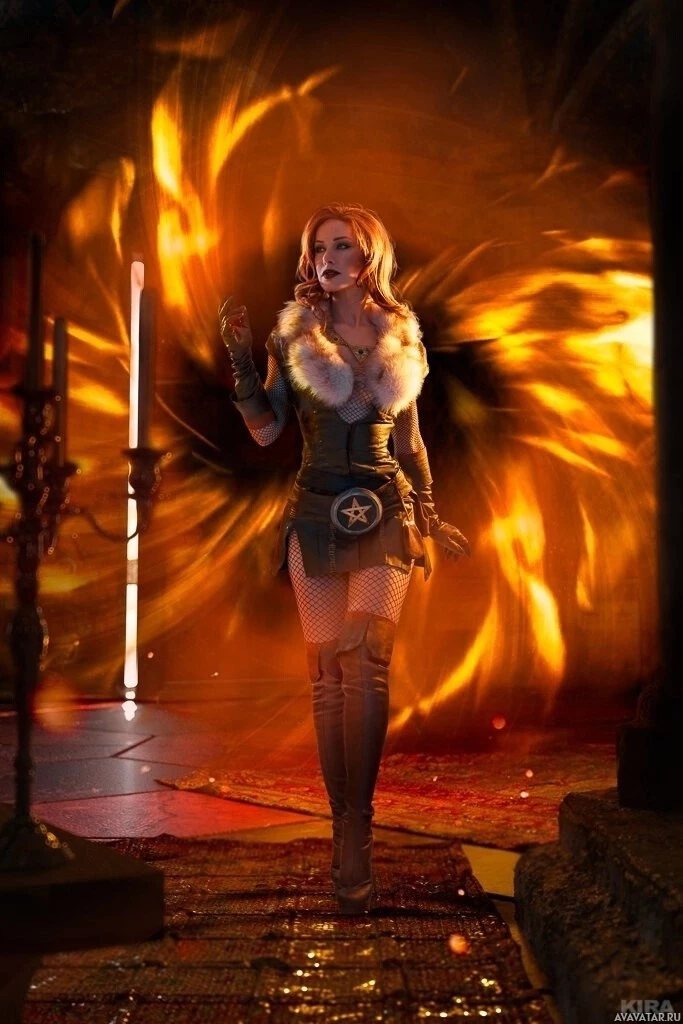 a specific character or costume. In this instance, she appears as Triss Merigold, with her signature