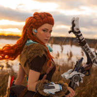 a body of water at sunset, providing a picturesque backdrop for the cosplay.