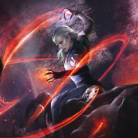 the red energy surrounding their hand and the disturbed expressions on the faces of the figures at their feet. The setting appears to be a dimly lit underground chamber or lair, which fits with the typical environment for