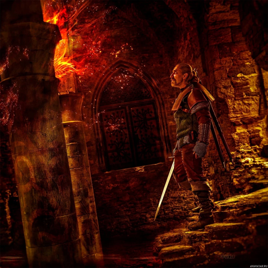 the video game "The Witcher 3: Wild Hunt." This is indicated by the sword and the context of being in an underground or dungeon-like setting, which are
