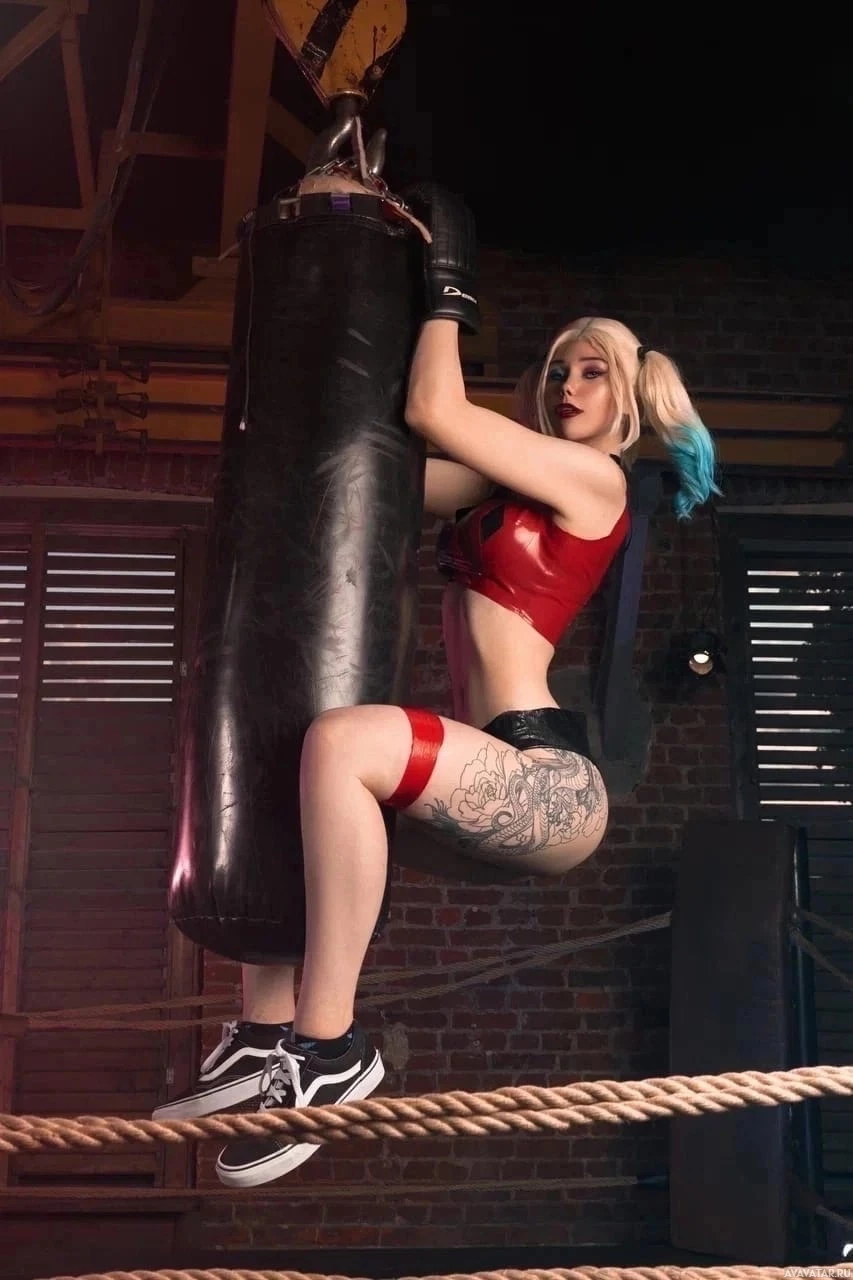Harley Quinn, a character from the DC Comics universe. They are holding onto