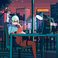 neon lights in the background illuminating the scene, hinting at an urban nighttime environment.