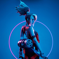 League of Legends." She is wearing a black bodysuit with