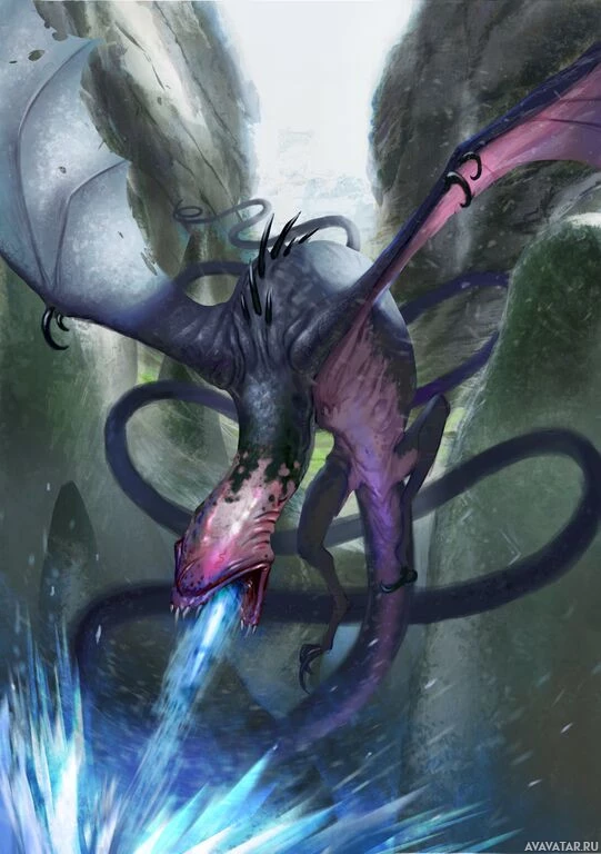 a fantasy creature known as a wyvern. The wyvern has the body of a dragon with wings and is often associated with mythical or magical settings in