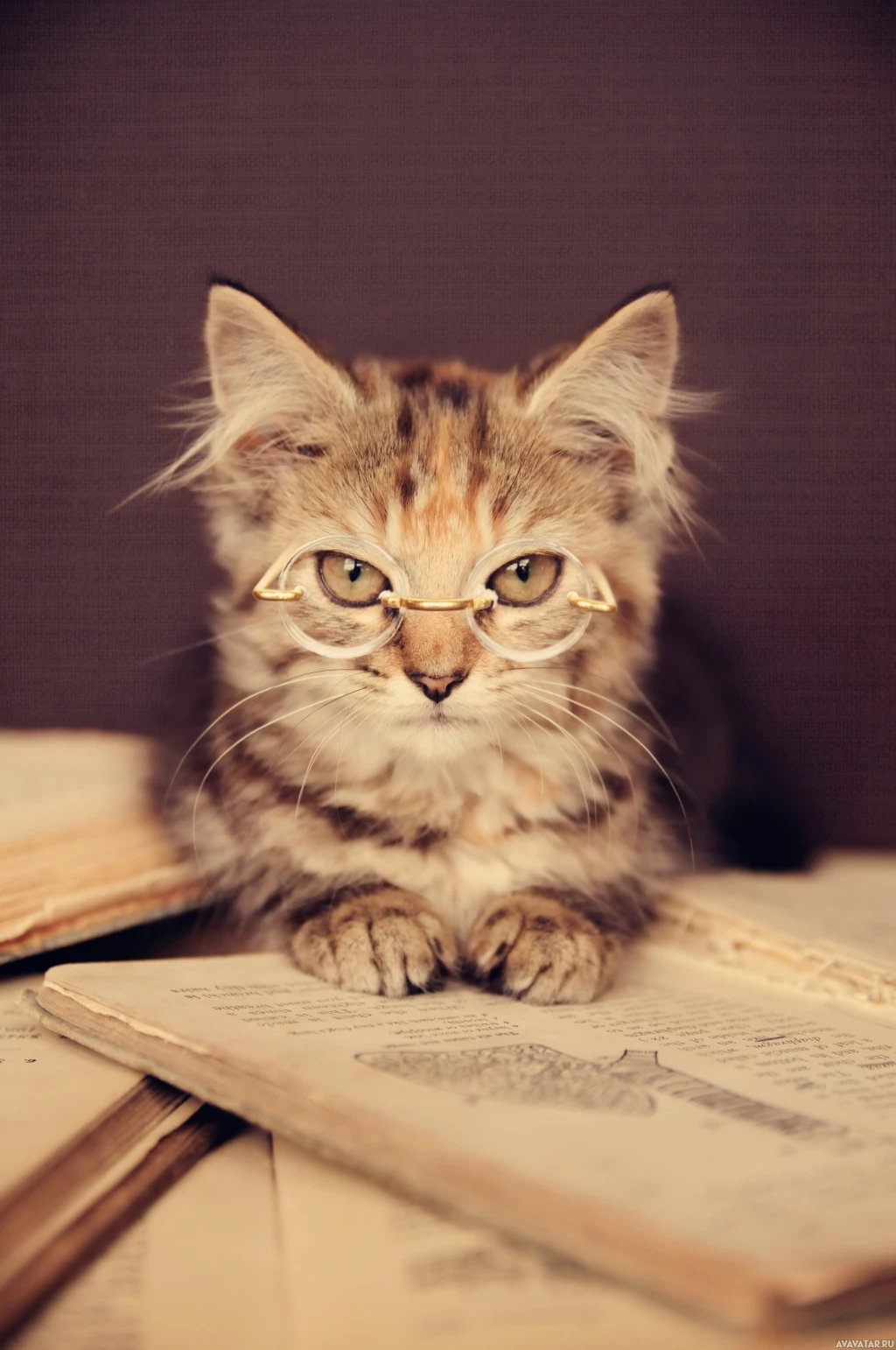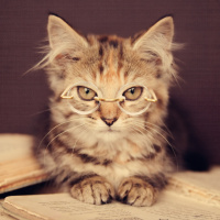 На картинке изображен кот в очках. Он сидит на чем-то, напоминающем открытую книгу, а на заднем плане - еще одна закрытая книга. На мордочке кота любопытное или озадаченное выражение, что придает изображению юмористический оттенок.
