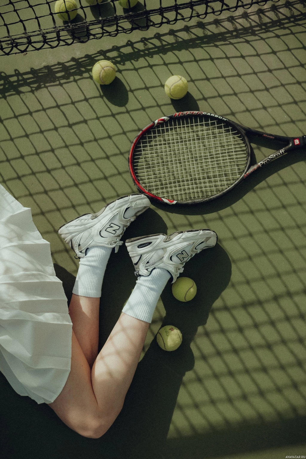 athletic attire, including shorts, socks, and shoes, which suggests they might be preparing for or have just finished playing tennis. There is also