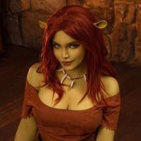 Princess Fiona from the "Shrek" franchise. The costume includes a green dress with a corset and a skirt,