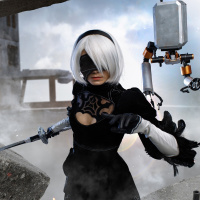 the video game "Nier: Automata." This is a cosplay photo, where an individual dressed as
