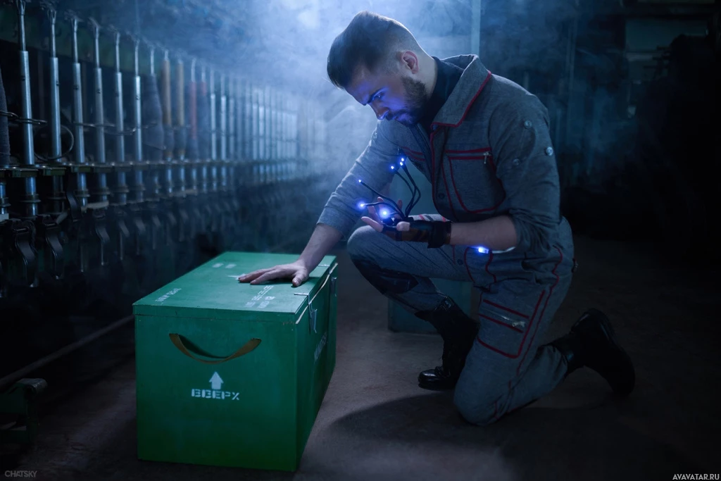 cosplay event, or similar context where the individual might be portraying a character related to technology or space exploration.