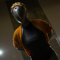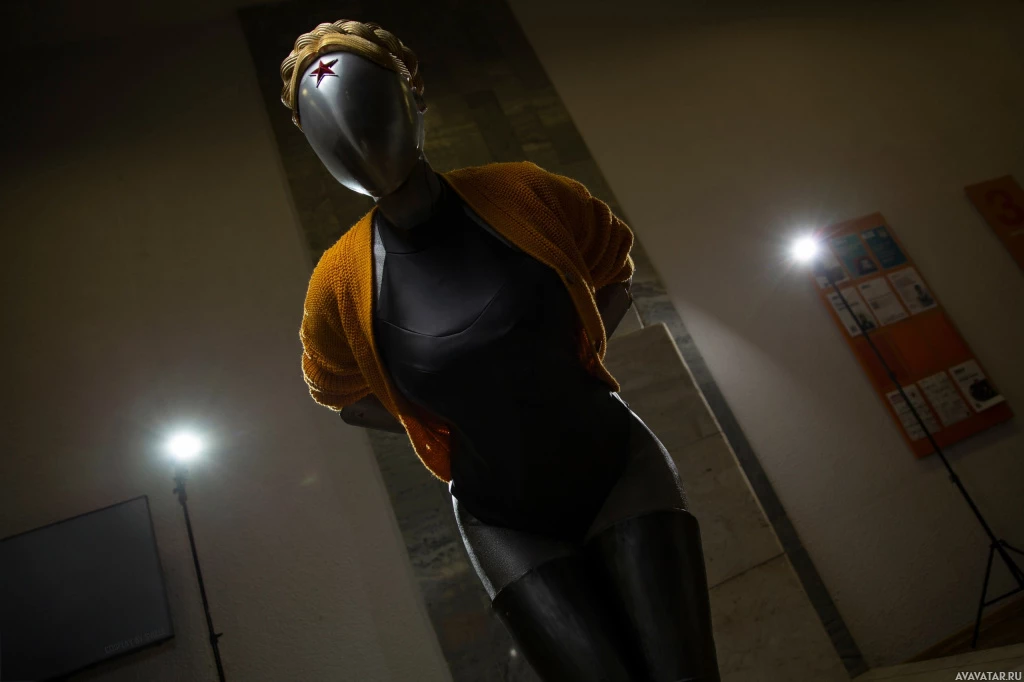 The image shows a humanoid robot dressed in what appears to be a cosplay outfit, possibly inspired by a character from