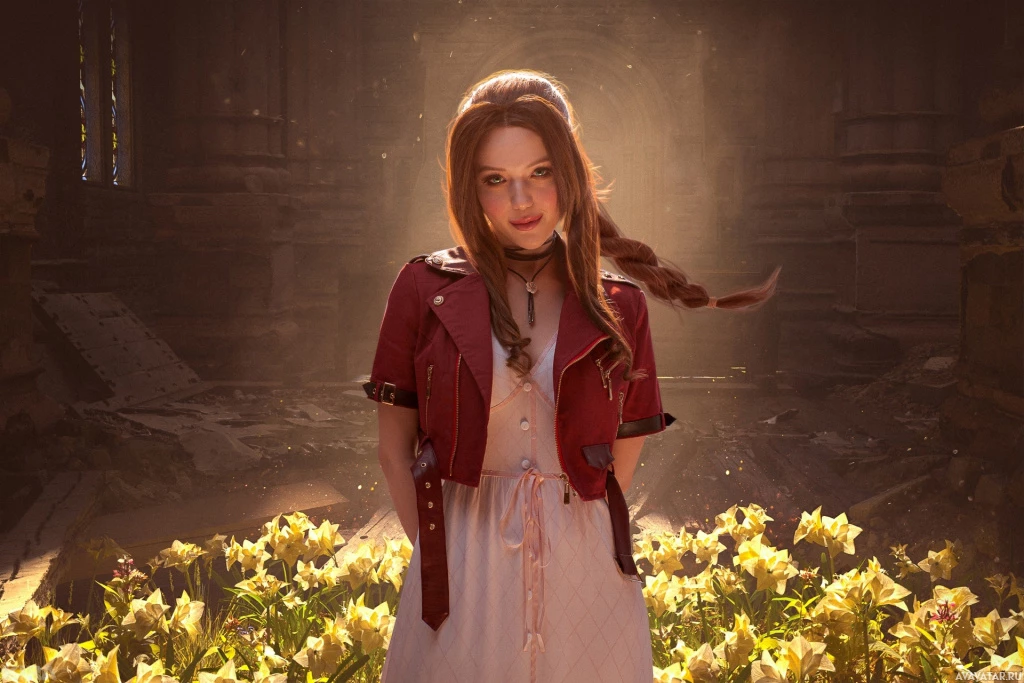 The image features a girl who appears to be cosplaying as a character from