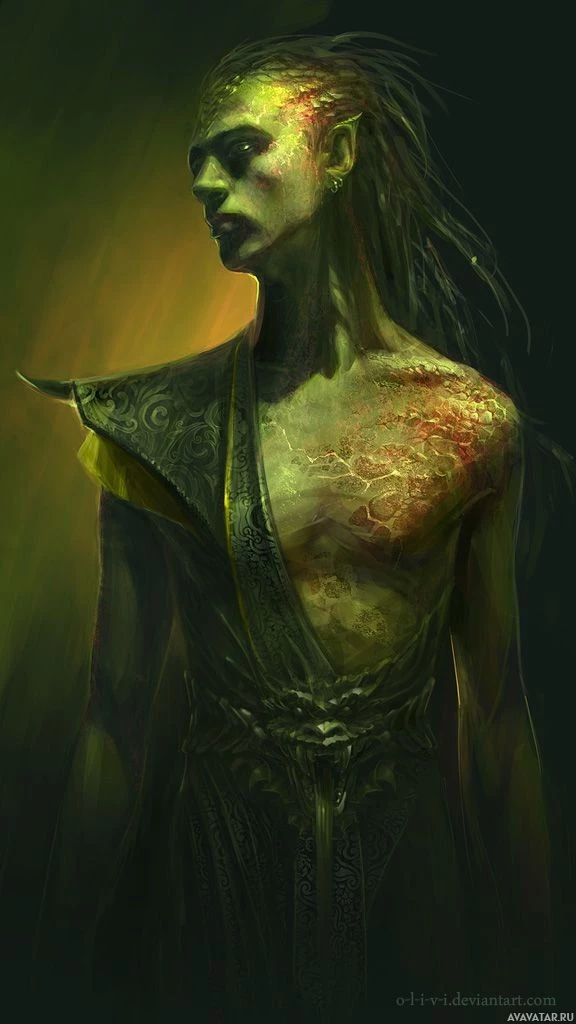 sickly complexion and his skin is covered in what looks like sores or rashes. His