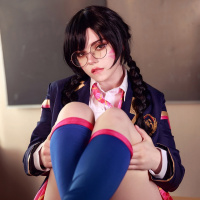 dark hair and is wearing glasses, which could suggest she's a student or someone engaged in academic activities. Her outfit includes