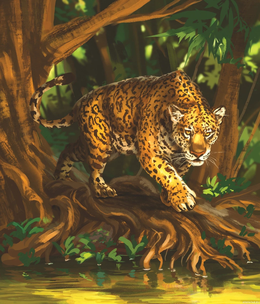 The image depicts a jaguar, which is a large carnivorous mammal native to Central and