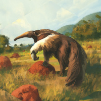 hind legs and holding what appears to be a sack between its front paws. This creature is in