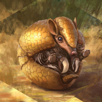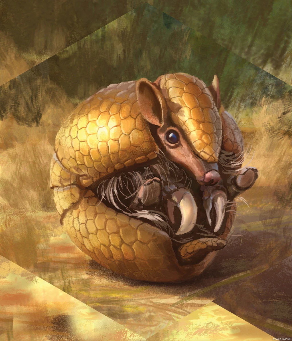 a fantastical creature that appears to be a hybrid between a badger and an armadillo. It has