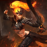 a skilled warrior or adventurer. The background has a dark and ominous feel to it, with smoke and possibly fire effects, which could indicate that the character is in combat or facing