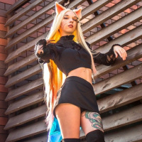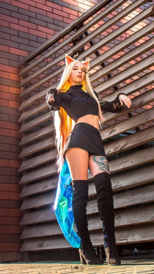 the video game "League of Legends." This individual is wearing a black outfit that complements their long