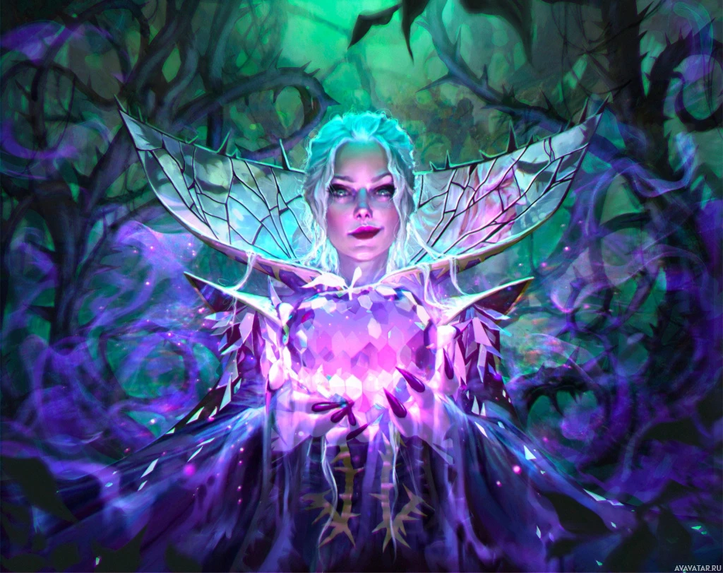 magical energy or a part of the mystical environment. The character has an ethereal appearance, which is often associated with