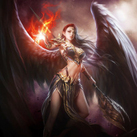 The image shows a fantasy-themed character that appears to be an angel or similar