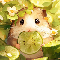 facial expressions, and hands. The humster is holding a lime in its hands and seems to be enjoying it, possibly suggesting that this character enjoys fruit or has a fondness for citrus. The background includes