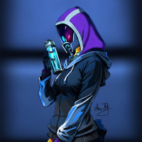 The image features a character from the video game "Mass Effect," specifically Tali'Zorah vas Normandy. This is a fan-made artwork, and not an official in-game representation of the character.