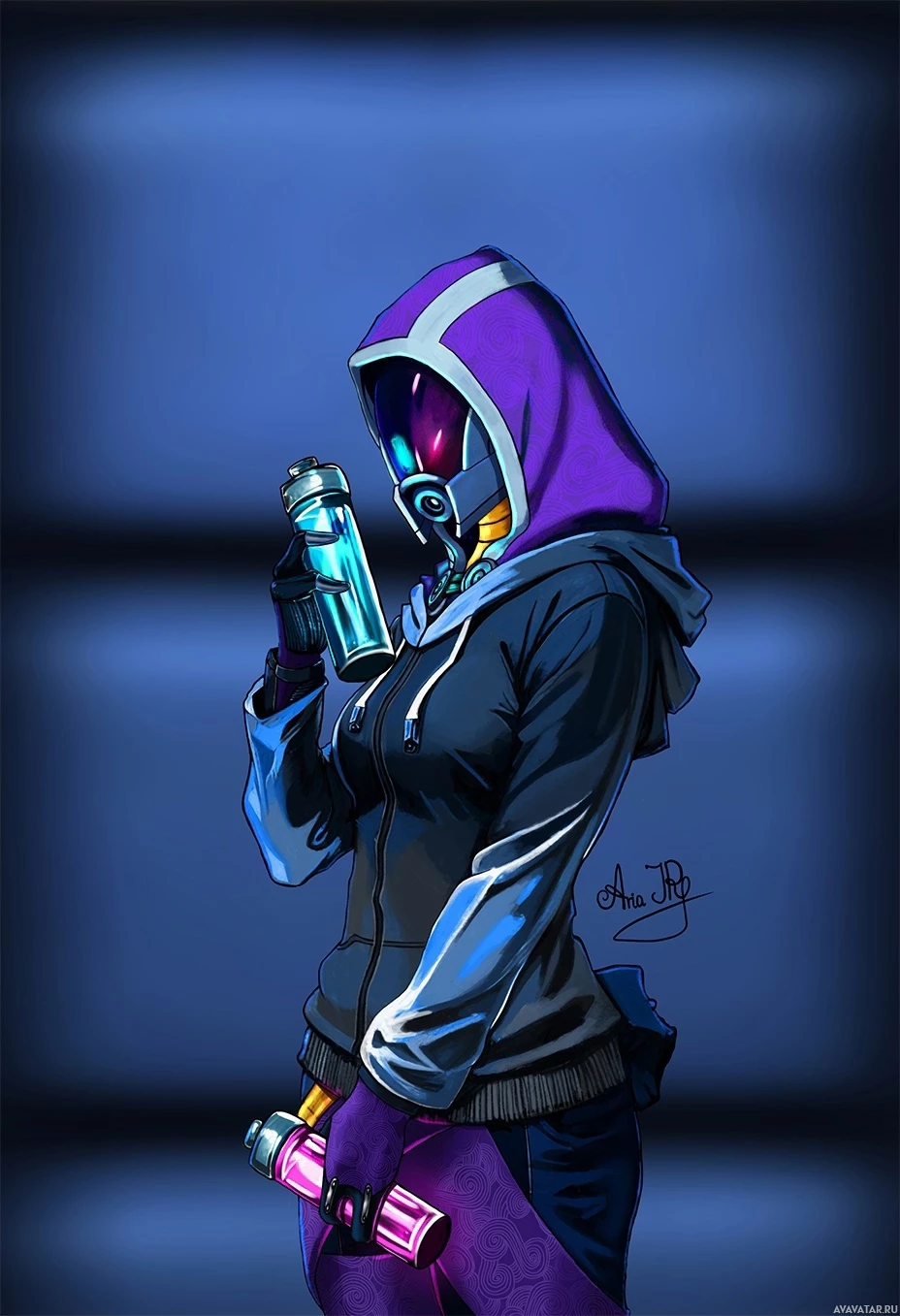 На картинке изображен персонаж из видеоигры "Mass Effect", а именно Тали'Зора из Нормандии. Это иллюстрация, созданная фанатами, а не официальное изображение персонажа в игре.