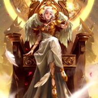 intricate designs around the edges. The angel is adorned with what appears to be wings, symbolizing her