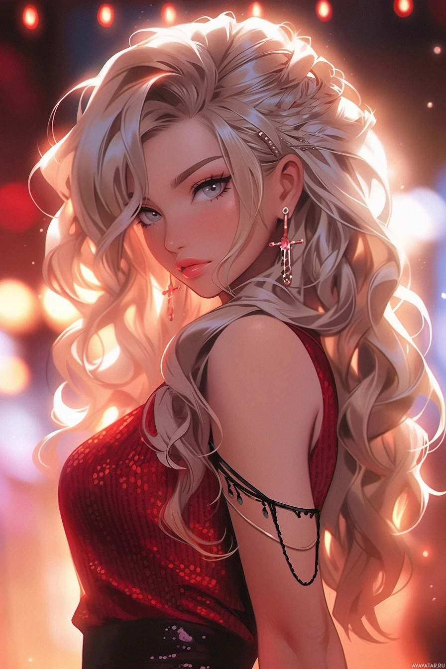 white hair and is wearing what appears to be a red outfit. They are posed in a way that suggests elegance and confidence. This type of artwork is often created by professional artists and could be used for various purposes such as