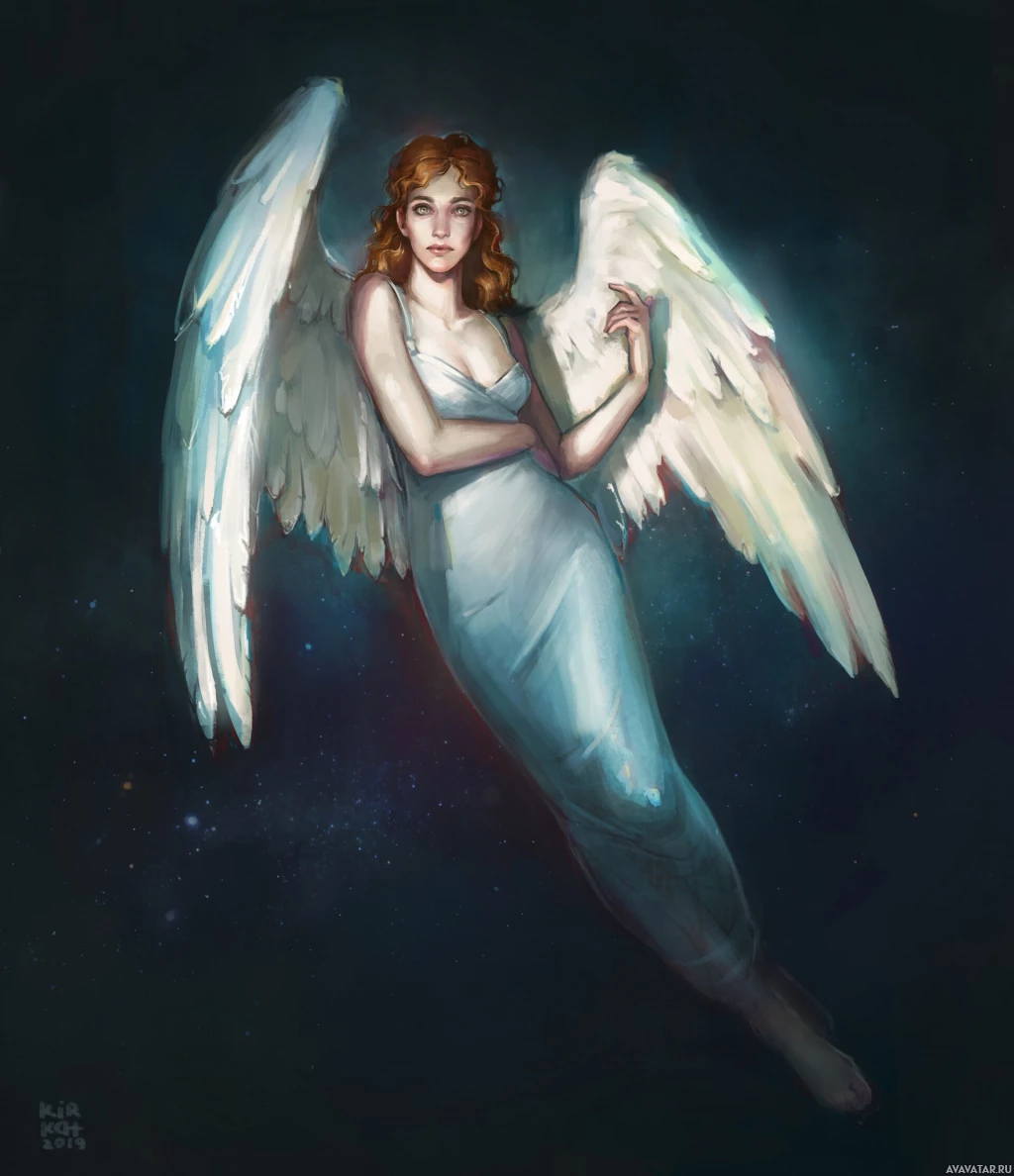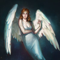 an angelic figure, possibly inspired by mythological or divine beings commonly associated with beauty and purity. The character is shown in a floating pose against a starry
